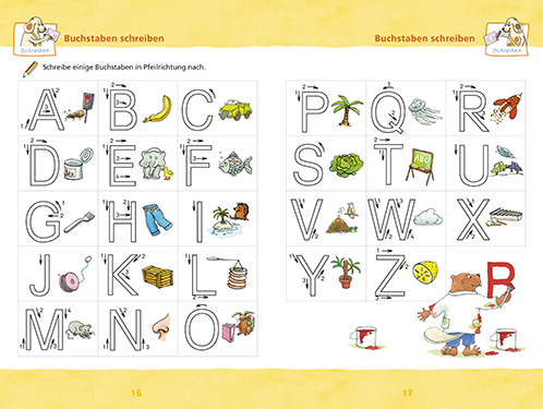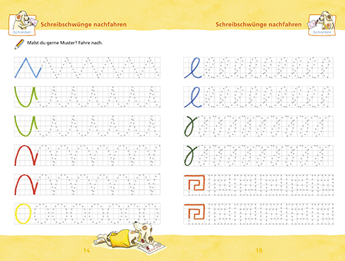 Lebendige Seitengestaltungen mit abwechslungsreichen bunten Übungen unterstützen die natürliche Lernfreude der Vorschulkinder und bereiten spielerisch auf die Schule vor. Von der Stiftung Buchkunst ausgezeichnet.