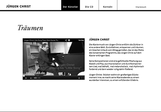 Der Website-Entwurf nimmt das Schwarz-Weiss der Klaviatur auf.